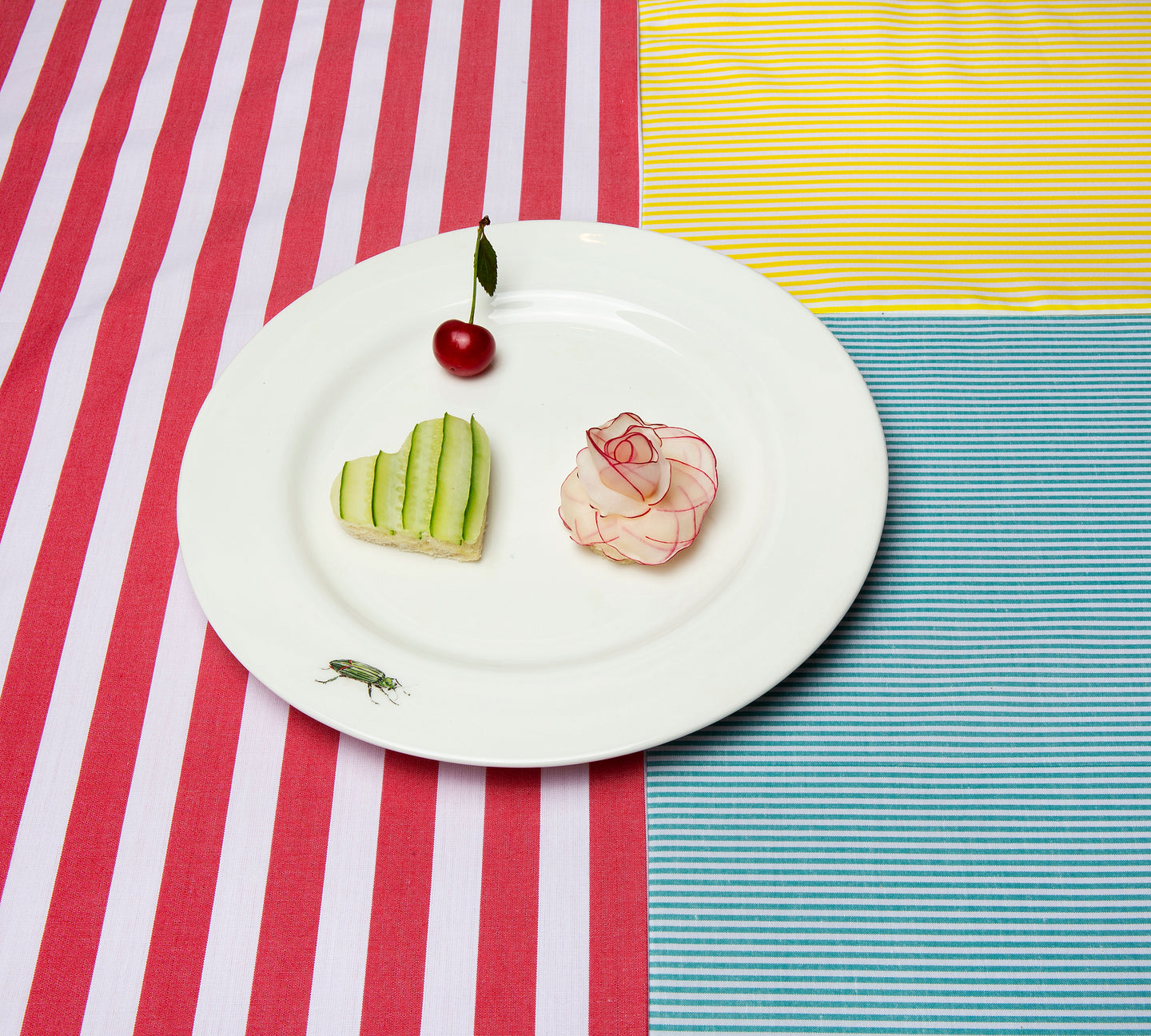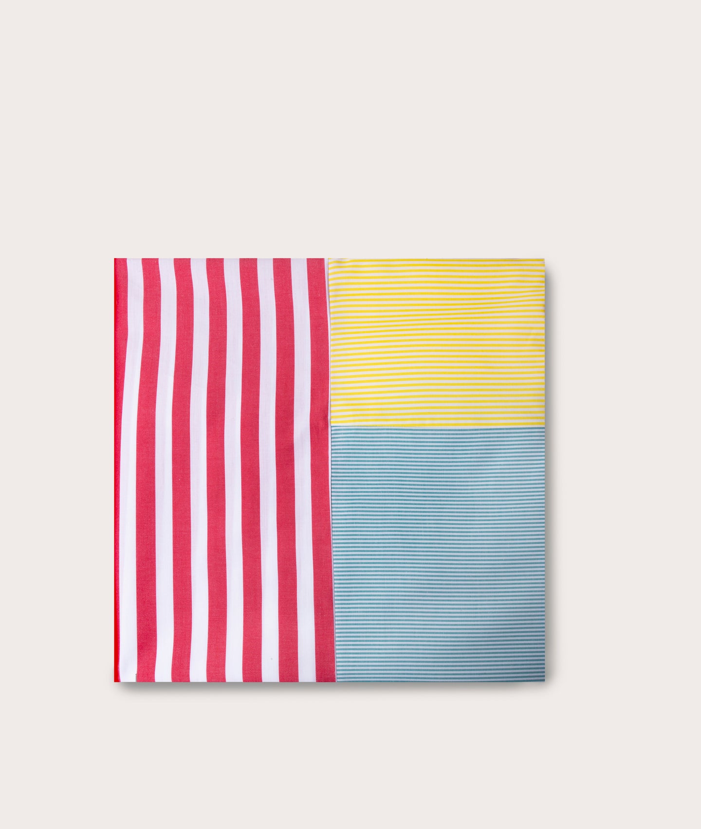 This modular tablecloth is made from a selection of Egyptian cotton striped shirting. Complete with buttons and buttonholes, it evokes your favorite summer shirt and – for the host whose door is always open – enables your table to grow infinitely.
