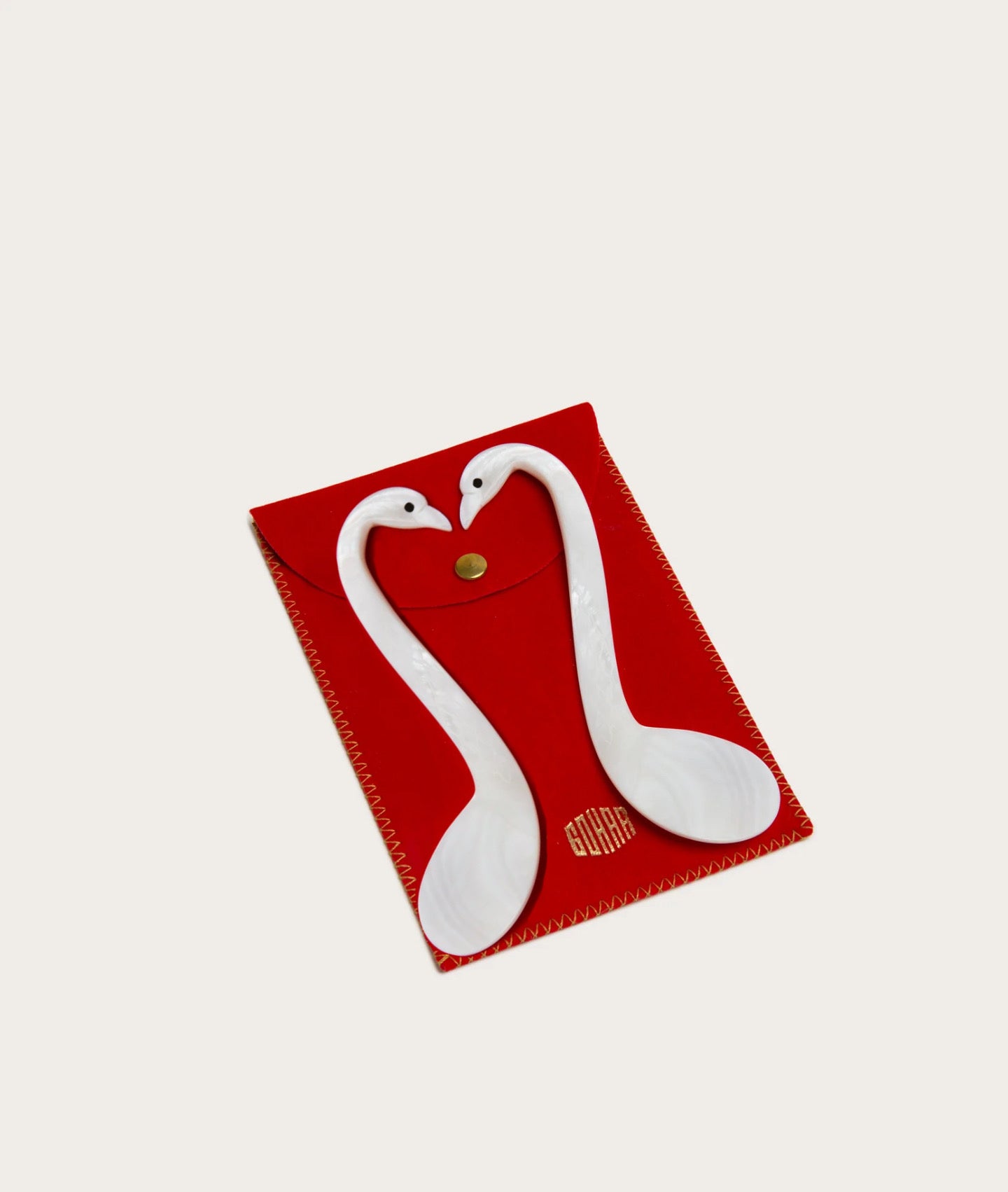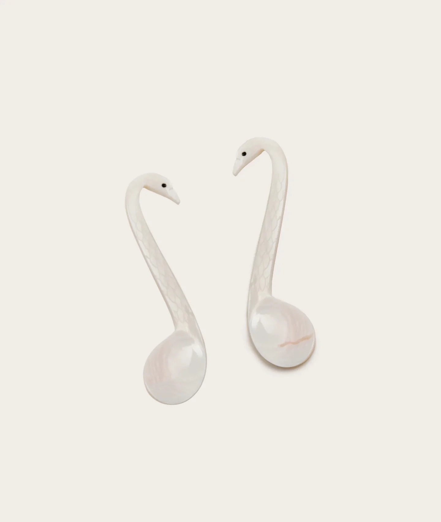 Hand carved from mother of pearl, our majestic swan spoon gets a romantic update as a duetting pair. The perfect couple for anything soft and sweet.