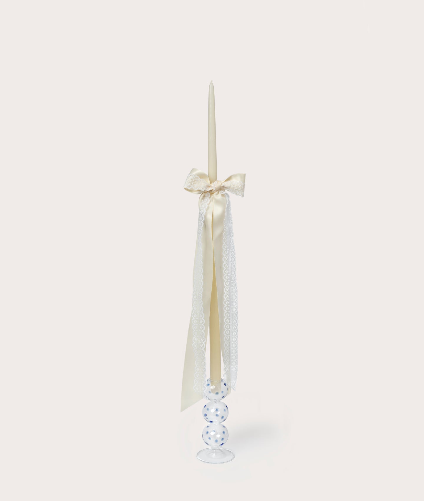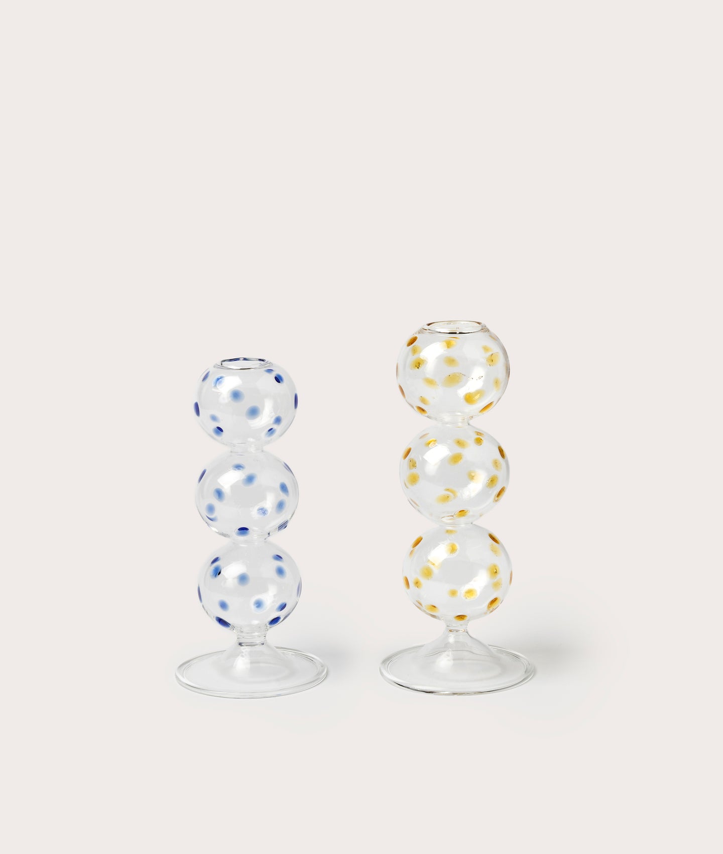 Casting a warm and glowing presence across the table, the Egyptian mouth-blown glass candle holder is a vessel of light. Adorned in rich and radiant coloured dots and designed to elevate the simple act of lighting a candle into a holiday ritual.