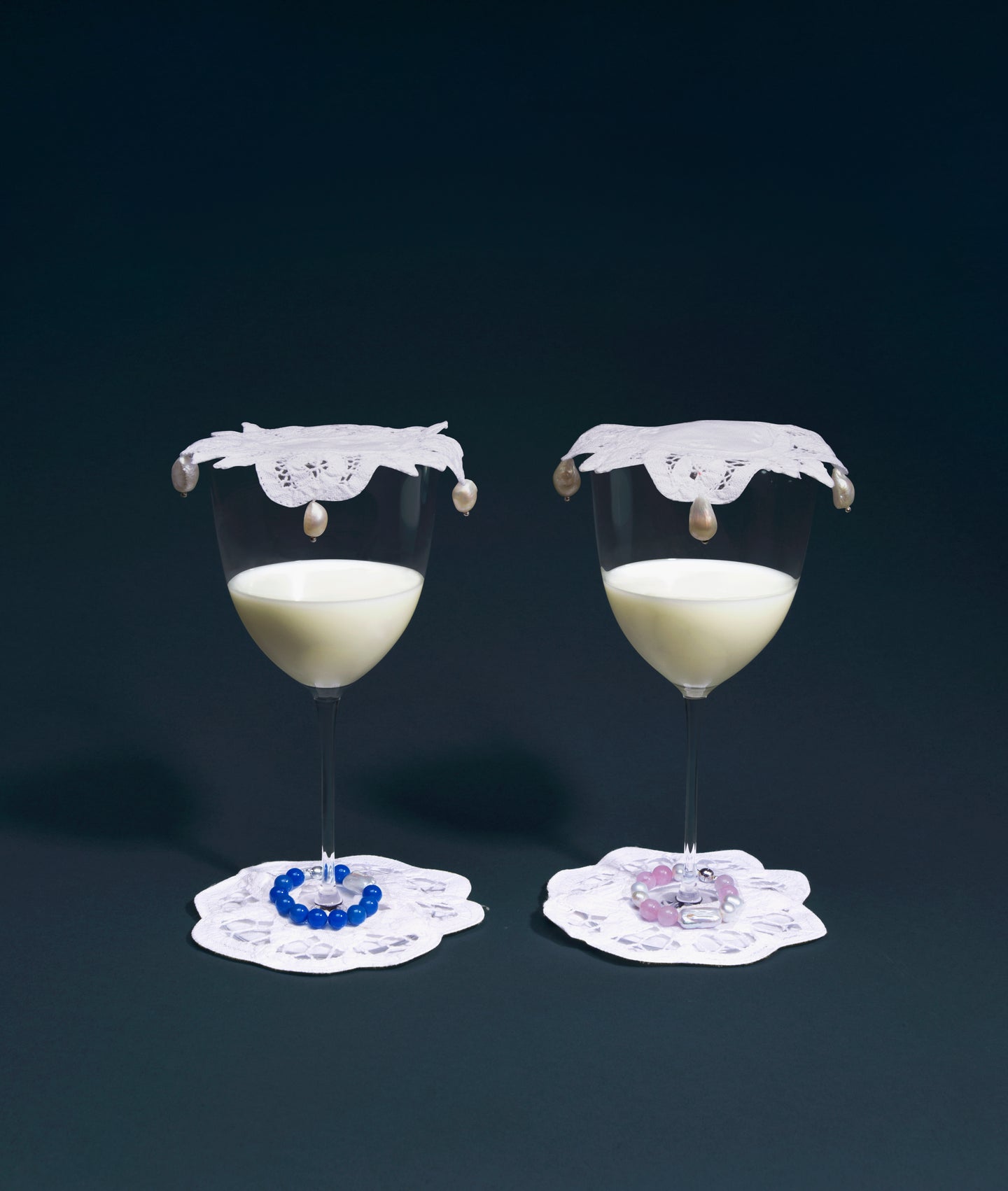 Spruce up your stemware with this set of pearl-weighted lace doily coasters. Use them as such, or better, drape them over your glasses should you need to step away. The freshwater pearls will ensure they stay squarely in place — even when dining al fresco.