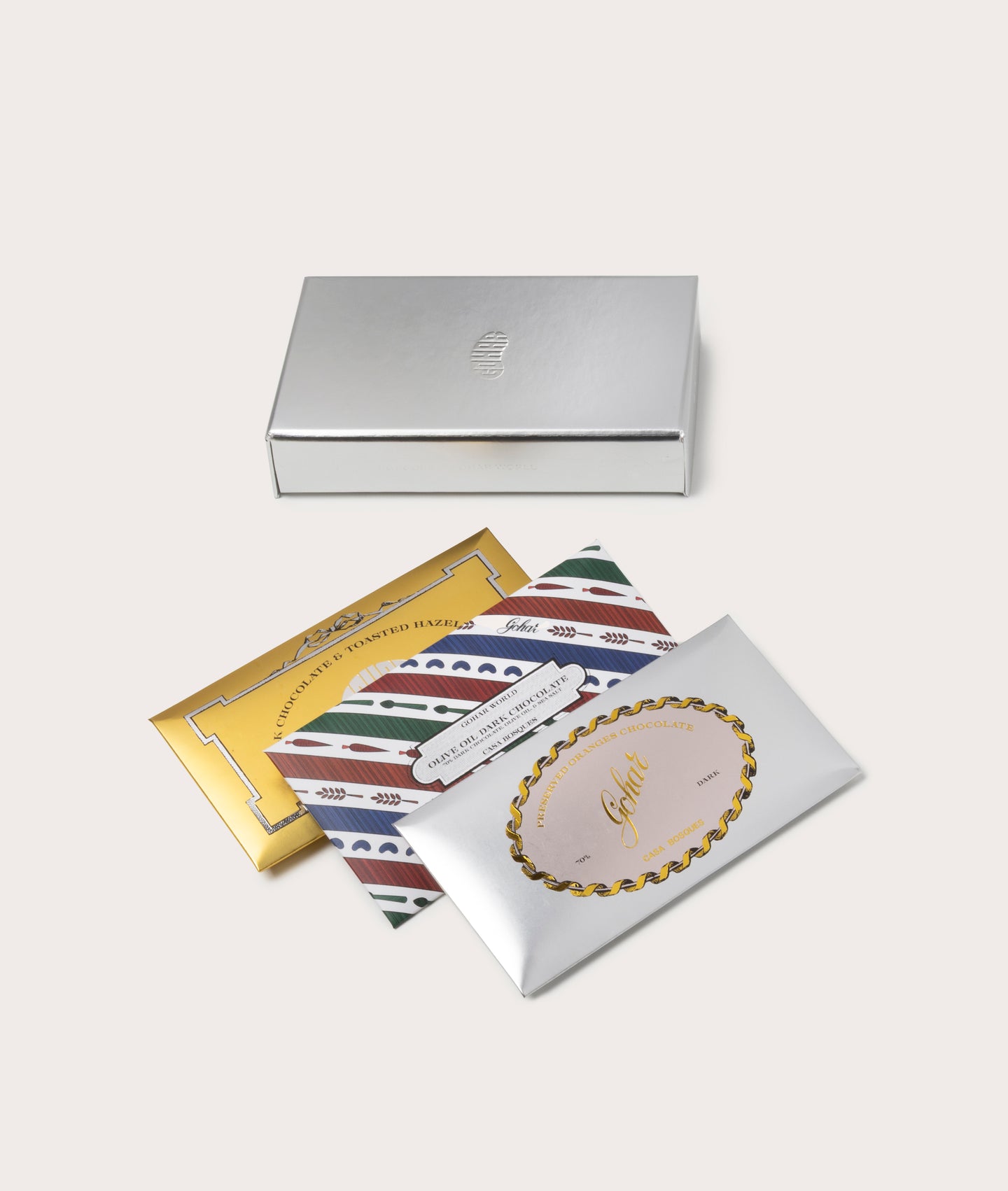 Our three signature Gohar World & Casa Bosques bars, beautifully boxed