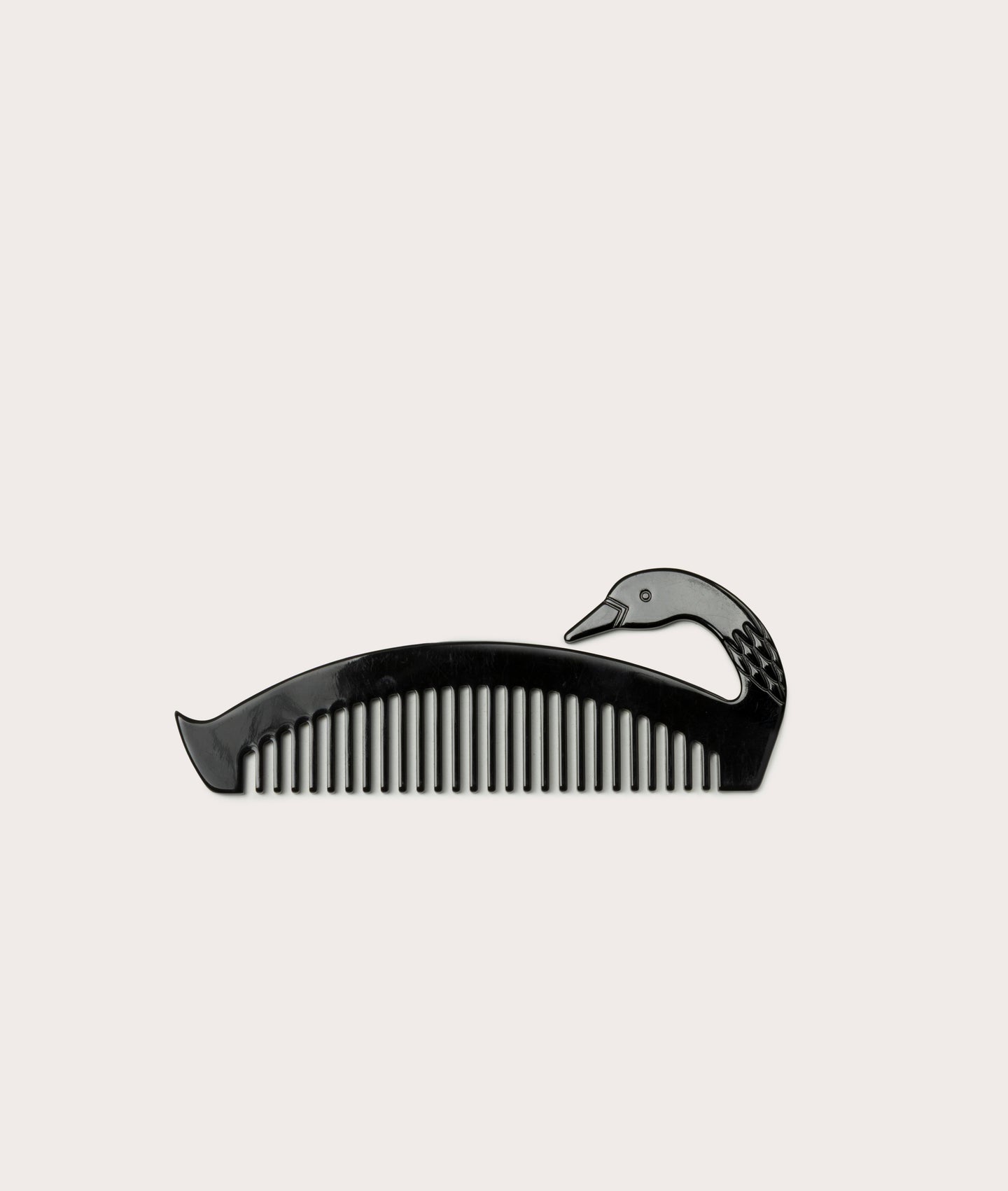 Handcrafted in France from smooth acetate, it glides through the hair with swan-like grace. Available in Black, Brown Tortoise, or Nougat.
