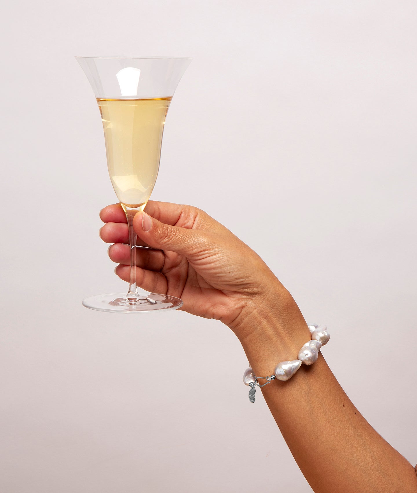 Unique, irregular gray baroque pearls are fastened with a 925 Sterling Silver hook to form our new Host Bracelet. Reminiscent of beans strung together.