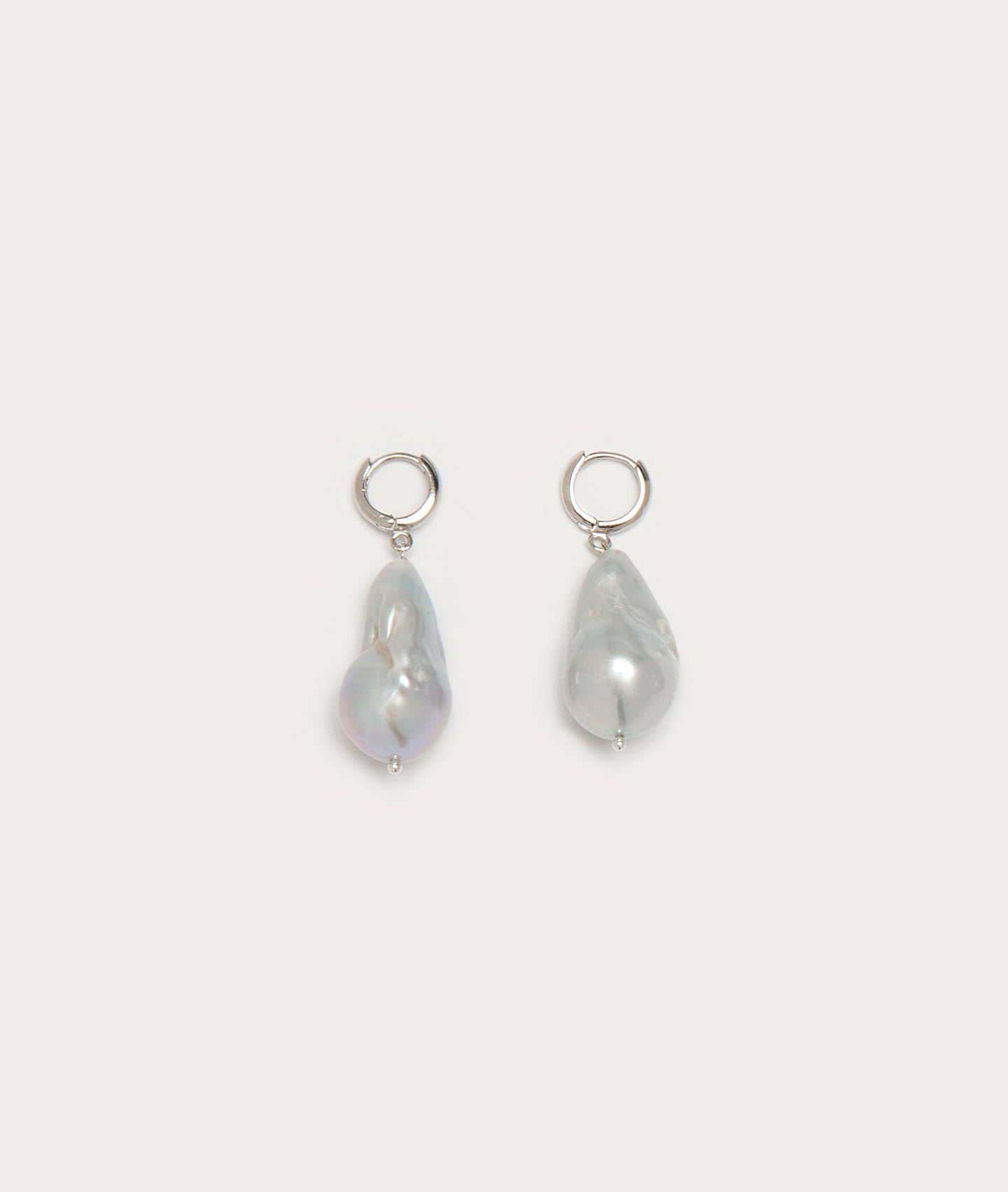 Embellish your lobes with unique, irregular gray baroque pearls fastened with 925 Sterling Silver mini hoops.
