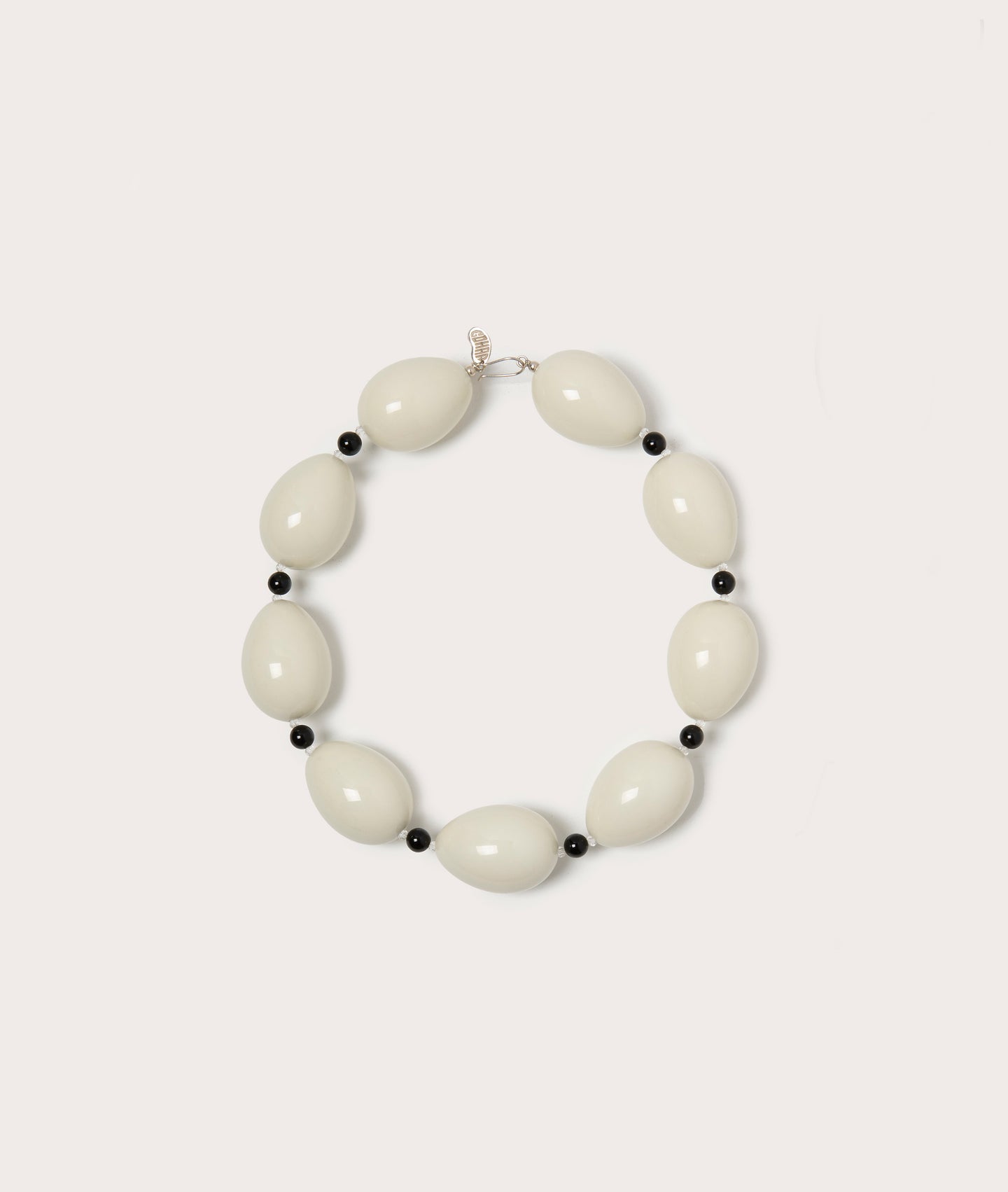 At the heart of Gohar World, the egg symbolizes the house: a vessel of beginnings, care, and continuity. Hand-knotted in Portugal on silk cord, porcelain forms and luminous crystal quartz are accented with a sterling silver charm - a delicate study in contrasts and a new motif within the collection.