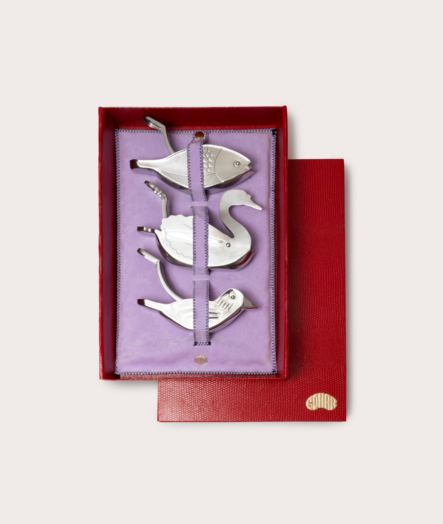 Our three signature Lemon Squeezers: Bird, Fish, and Swan, all in one place.
