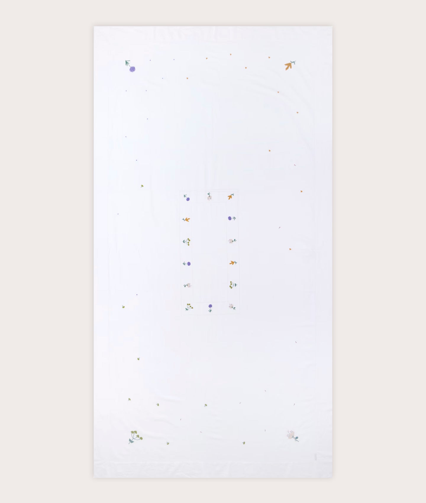 A fine linen tablecloth that brings the flowers of the Mediterranean to your table.