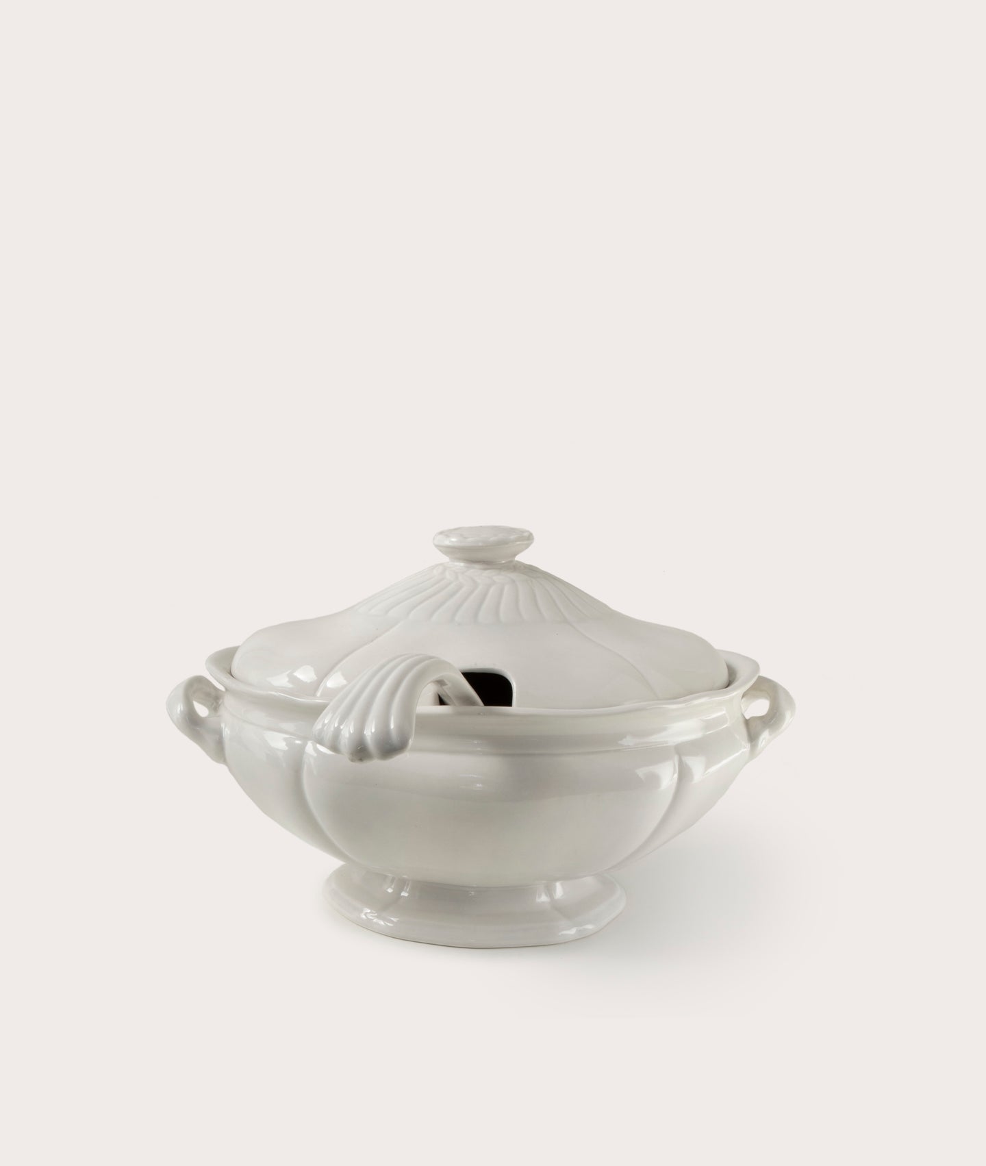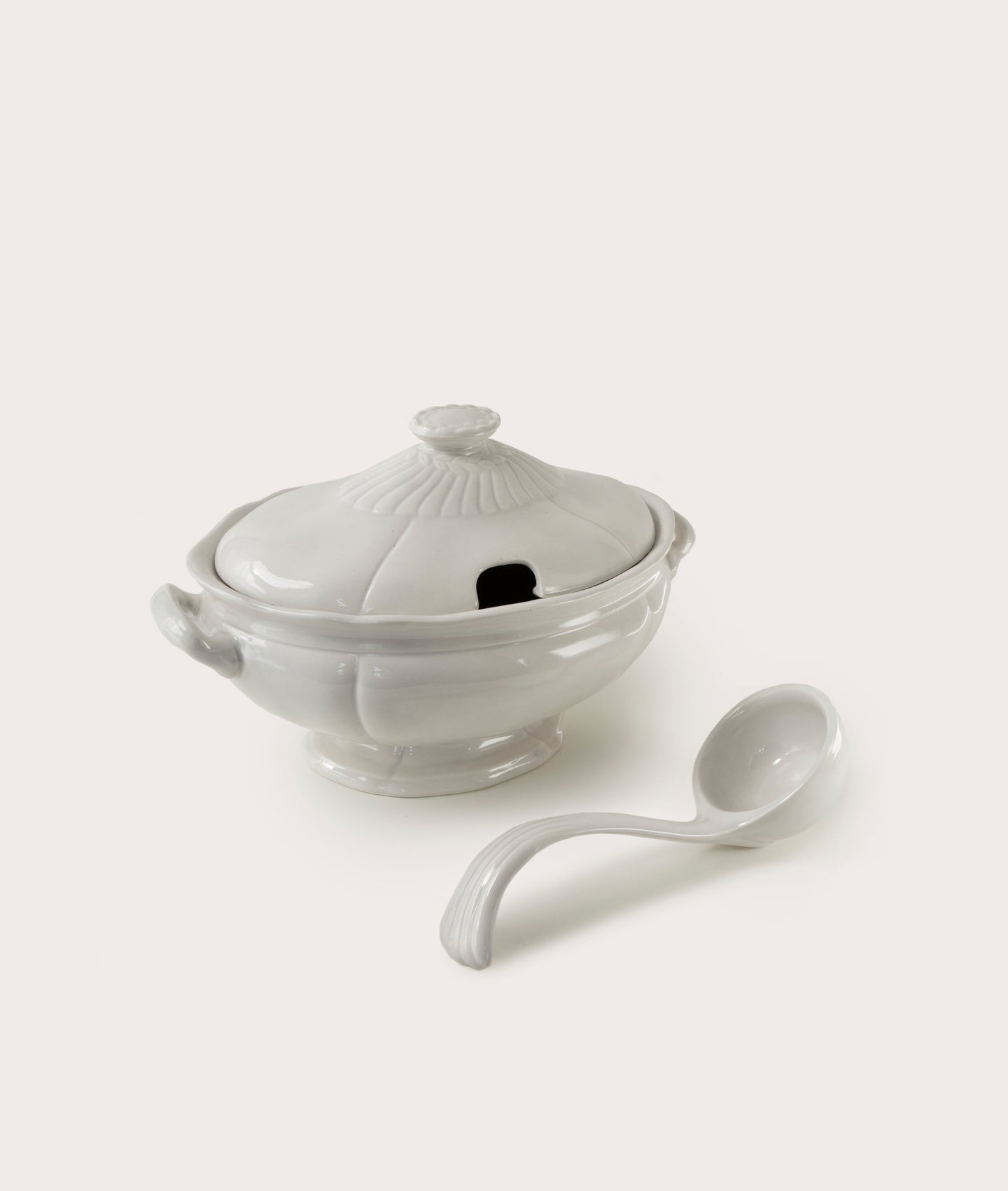 This elegant oval ceramic tureen with ladle is perfect addition to your holiday table.